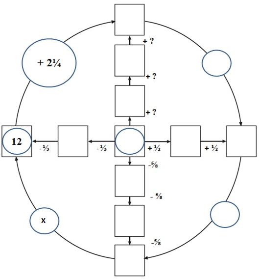 Find the value of the fraction which replaces the X in the diagram.