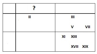 Look at the Roman numerals and match the appropriate heading to the letter ?. Choose your answer:AOdd Prime NumbersBEven Prime NumbersCLess than 10DNone of the answers are correctEBetween 10 and 20