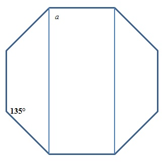 A regular octagon is formed by joining together a rectangle and two isosceles trapeziums.
