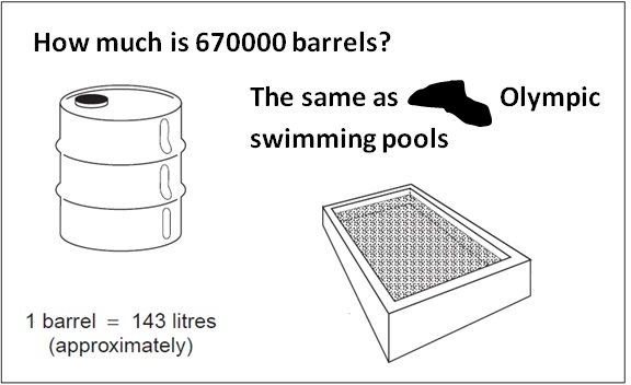 In 2010 an estimated 670000 barrels of oil were spilled into the Gulf of Mathsland due to the Mathsland Deepwater Oil Disaster.