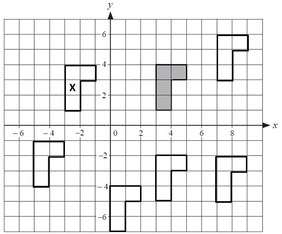 The shaded shape is translated to make the unshaded shape labelled X in the diagram.